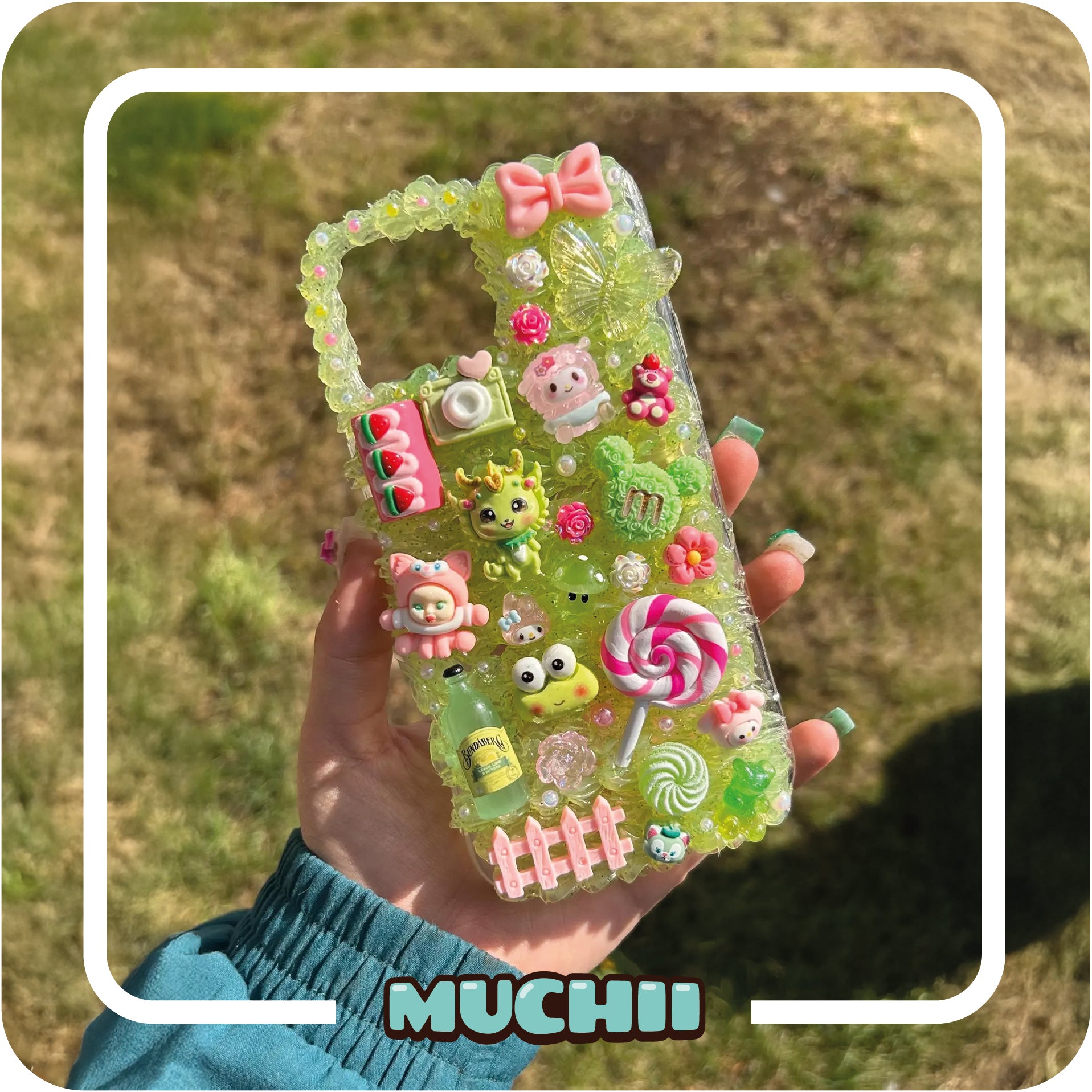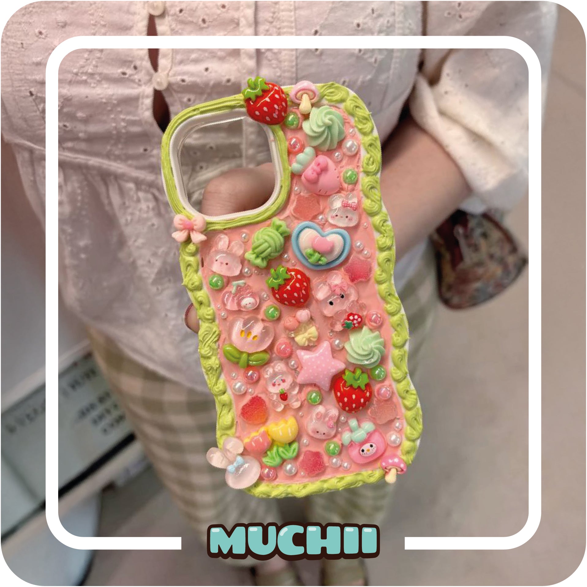 Muchii is our very own yuru-chara, or mascot character, created to embody everything we love about decoden art and Japanese kawaii culture! Muchii represents the heart of our brand—creative, fun, and full of charm.